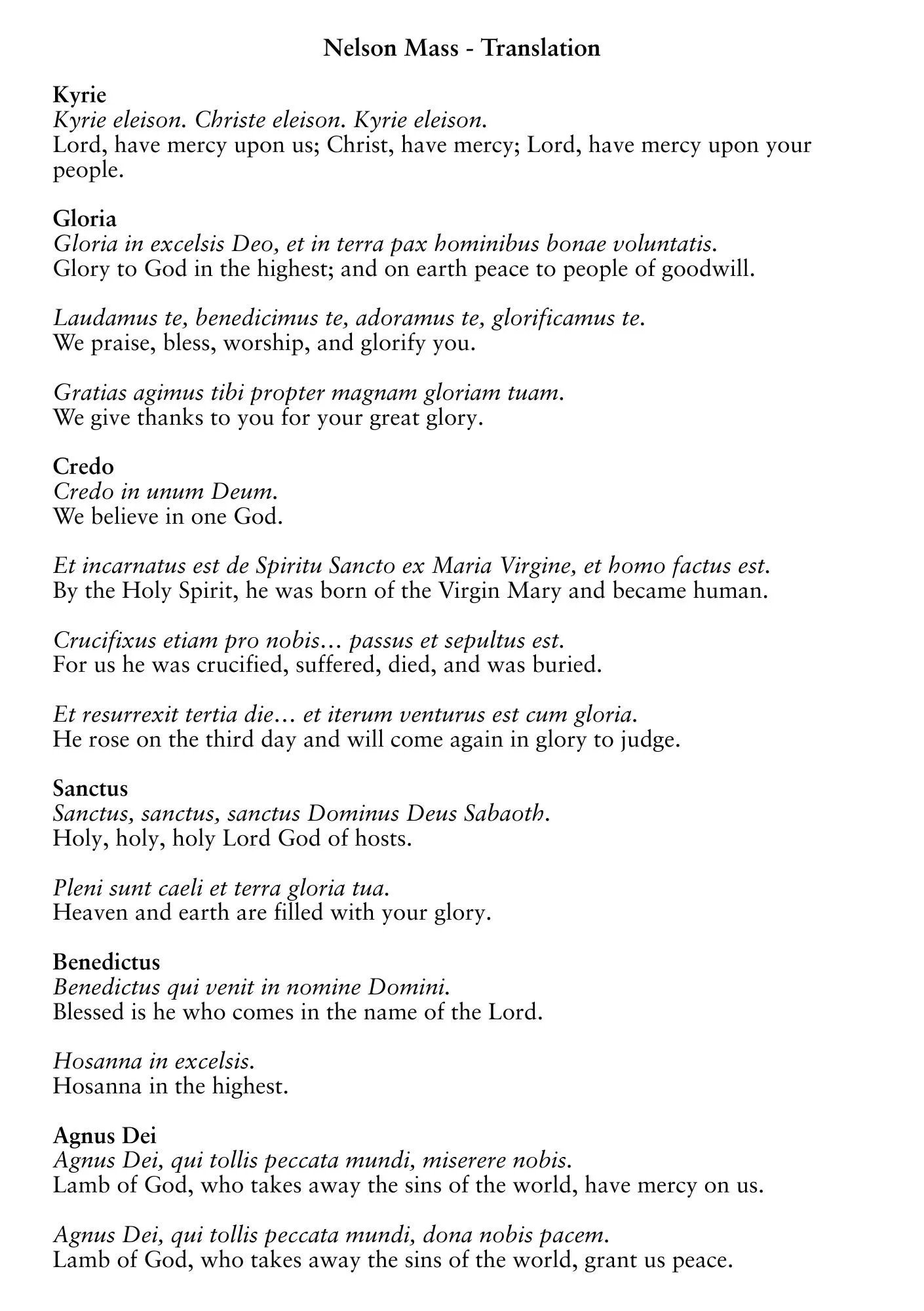 Programme - Nelson Mass